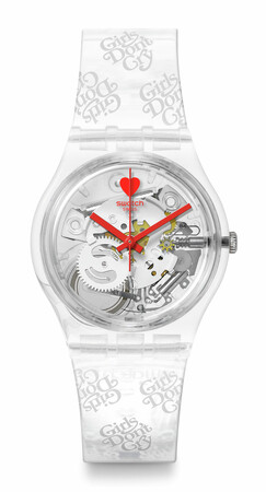 「GIRLS DON’T CRY BY VERDY」は、VERDYが妻への贈り物として手がけたアイコニックなプロジェクトを描いたウォッチです。ストラップの全体にホワイトのレタリングが施されたトランスペアレントモデルには、彼が込めた思いが体現されています。文字盤に描かれたハートが愛を表現し、VERDYのアートをシックに、そして大胆な表情を添えます。34mmのクラシックなGENTモデルは、スタイリングを邪魔することなく、どんなサイズの手首にもフィットします。