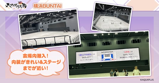 某日、大アクアプラス祭実行委員会メンバーが会場の横浜BUNTAIを視察。今年4月に開業したばかりの同会場は、アリーナの観客席からステージまでの距離が近いのが特徴的です。