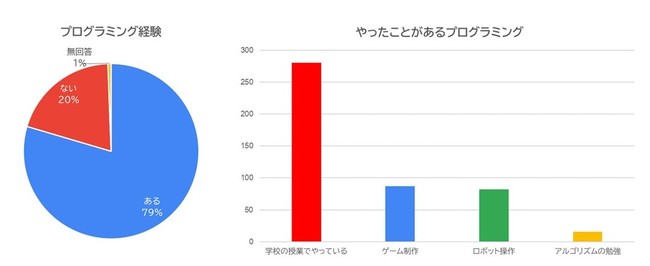 プログラミングの経験については、約8割が「やったことがある」と回答し、その7割が学校での授業で経験でした。使用経験のあるデバイスはパソコンが6割強、タブレットが約5割で、学校での授業でパソコンを使った人が約6割、タブレットが約5割とGIGAスクール構想における1人1台のデバイス準備が順調に進んでいることが伺えます。