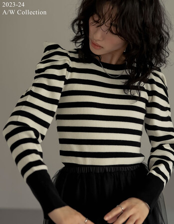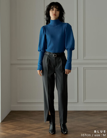 【会員様限定!1000円OFF】[2023A/W COLLECTION]パフショルダー細リブタートルニットトップス
