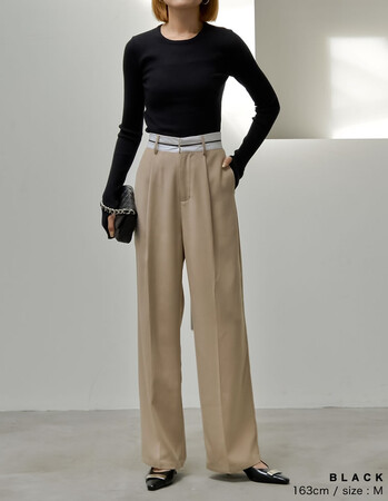 [2023A/W COLLECTION]袖パール付きリブニットタートルネックトップス