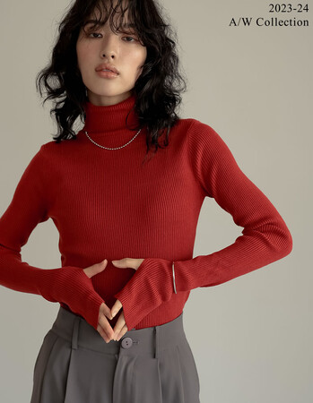 【会員様限定!1000円OFF】[2023A/W COLLECTION]指穴リブニットタートルネックトップス
