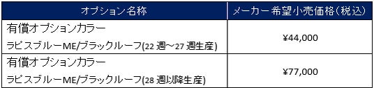 ・ラピスブルーME/ブラックルーフが選択可能に(有償オプションカラー)