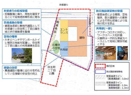 ・建物の不燃化により、延焼防止に配慮。本郷通り沿道の延焼遮断帯の形成を実現します。