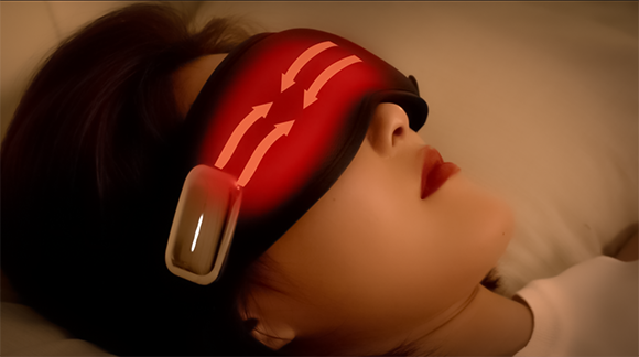 振動だけでなく、「CW-E18」は埋め込み式発熱素材を採用し、アイマスク内部の温度を最もリラックスできる40~50℃に保ち、目の周辺の筋肉をリラックスさせます。