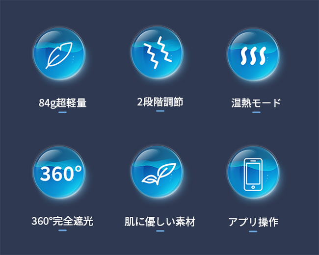 【360°遮光・温熱/冷温対応・2レベル振動・3D密着設計・折りたたみ収納】