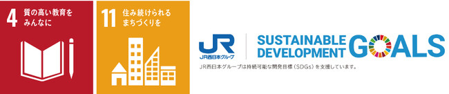 JR西日本ホテルズは、持続可能な開発目標(SDGs)を持ち、地域と共に、お客様一人ひとりの豊かな人生を広げます。今回ご案内の取り組みは、SDGs 目標の 4番、11番に貢献するものと考えています。