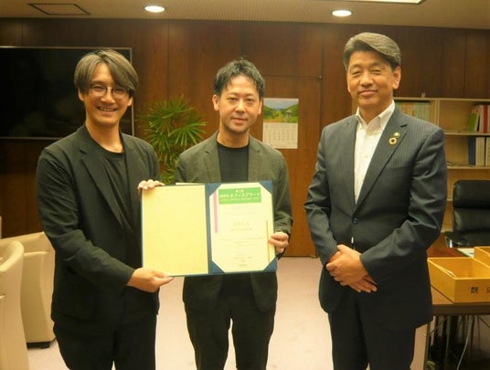 このたび、(一社)日本オフィス家具協会(JOIFA)が主催する第3回JOIFAオフィスアワードにおいて、Workcation House Uが見事に最優秀賞を受賞しましたので、その報告に市長を表敬訪問しました。