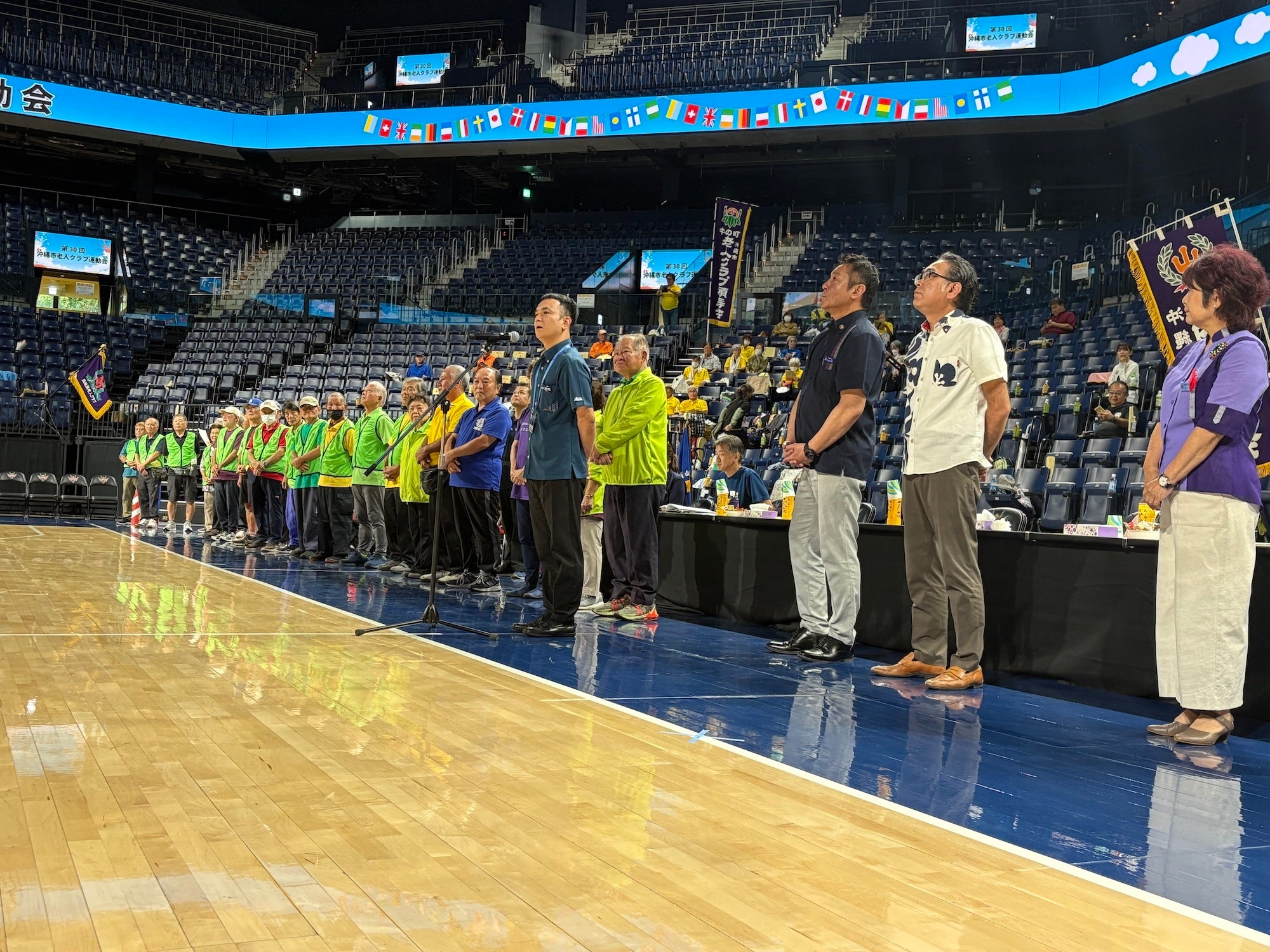 開会式には、新里八十秀 沖縄市老人クラブ連合会会長、花城大輔 沖縄市長、瑞慶山良一郎 市議会議長に加え、