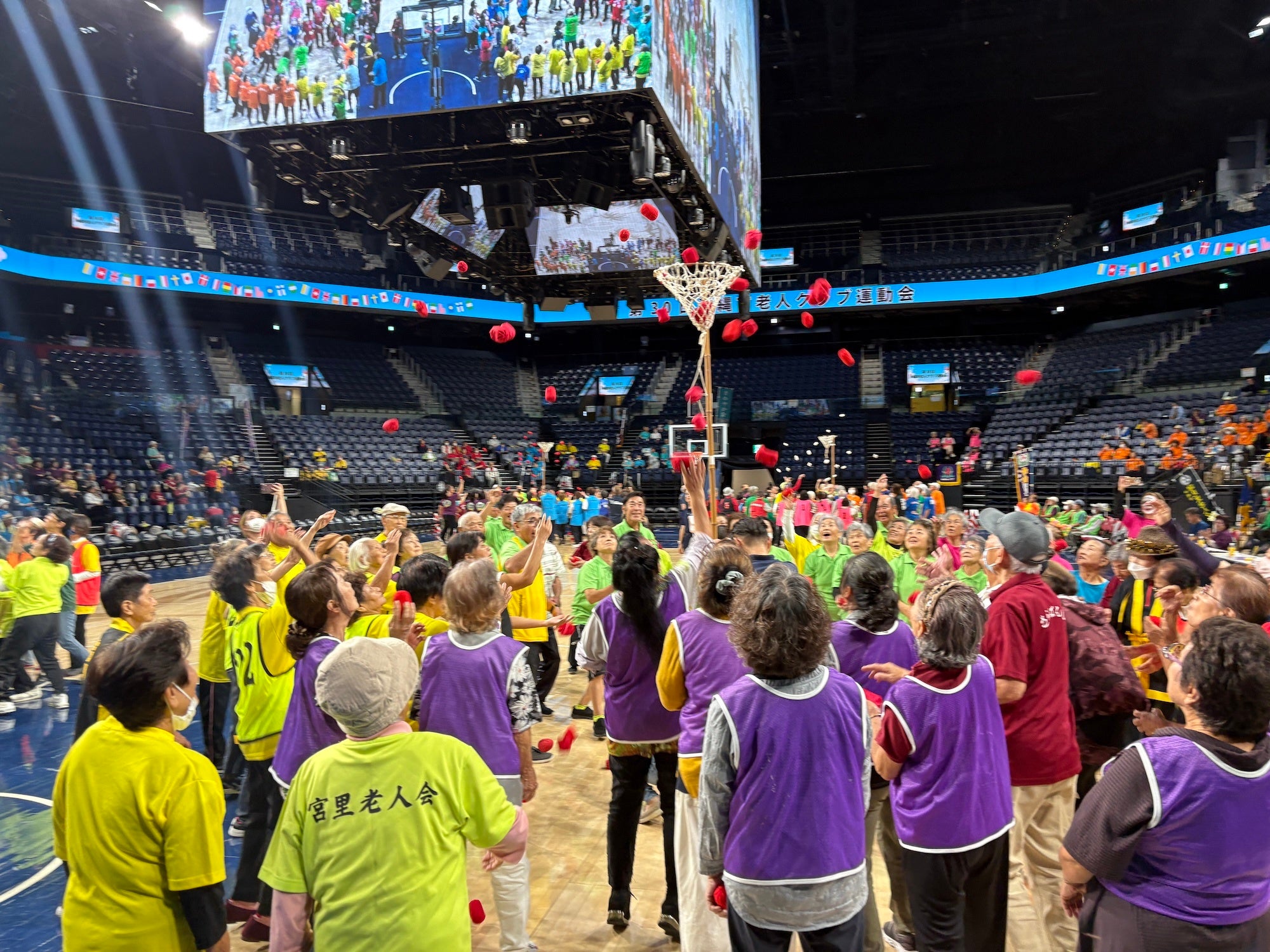 本イベントには沖縄市内すべての老人クラブが参加し、普段はアリーナを訪れる機会の少ない市内北部・東部地域の皆様も多数来場。