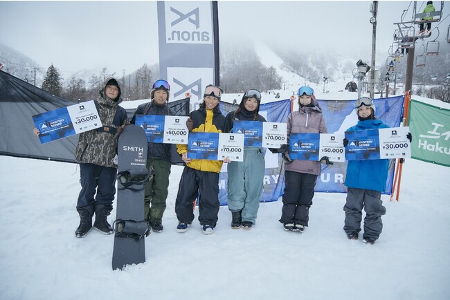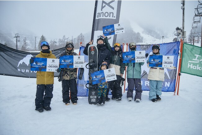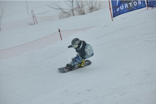 3月18日のイベント当日、春の雪が降りしきる白馬五竜の会場には、4歳から58歳まで幅広い年齢層のスノーボーダーが早朝から集まりました。バンクドスラロームとパークセッションに合計153名が参加。藤森由香、降旗由紀、中山悠也、宮澤悠太朗、竹内悠貴といったBurtonライダーも参加し、共にセッションを楽しみました。