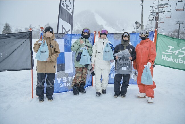 今回のイベント会場となった、エイブル白馬五竜のとおみゲレンデは、日中・ナイター営業双方におけるリフト稼働や、ナイター営業における降雪機及び照明使用において、100%再生可能エネルギーを活用しています。日頃より、地球環境の保全に配慮した取り組みを積極的に実施しているリゾートとの協業により、山をフィールドとして楽しむスノーボードのブランドとして、環境負荷低減への取り組みを通した啓発及び環境保全活動の推進につなげることも、Mystery Series開催の大きな意義の一つとなっています。