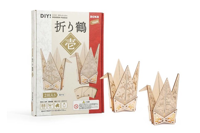 1羽のパーツ数は44。約1時間ほどで、1羽をつくることが出来るため初心者の方でも挑戦しやすいウッドパズルです。完成後は、同封されている紐を使って2羽の鶴を繋げることも。秋の深まりを感じるこの季節におうちでゆっくりと制作して、来たるお正月に縁起物として飾るのもおすすめです。それから、海外の方に向けての贈り物やお土産にも喜ばれそうです。