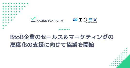 株式会社Kaizen Platform(本社:東京都港区、代表取締役:須藤 憲司、以下「Kaizen Platform」)は、エン・ジャパンのグループ会社でセールス活動全般のコンサルティングや支援を展開するエンSX株式会社(本社:東京都新宿区、代表取締役社長:岩崎 拓央、以下「エンSX」)と協業し、BtoB企業向けにセールス&マーケティングの高度化の支援を開始します。