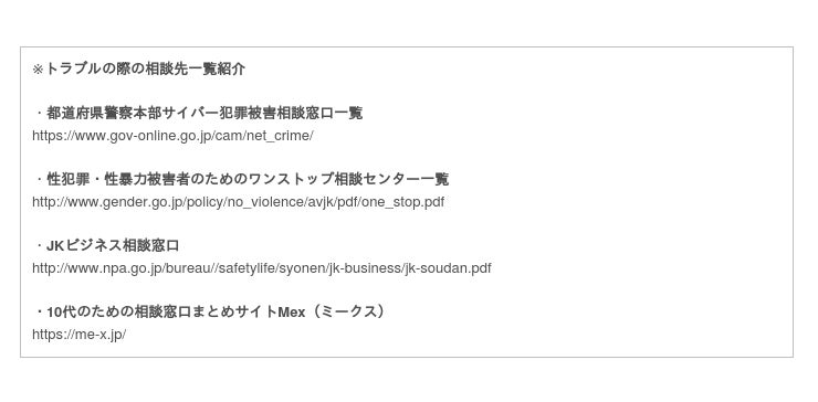 万が一トラブルに巻き込まれたかもしれないと感じたら、すぐに信頼できる大人や各種相談窓口へ行きましょう。