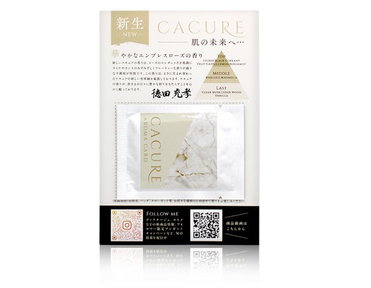 当社の『アロマカード』が、ダイアナ社の化粧品シリーズのノベルティとして採用され、同社の会報誌に同梱されただけでなく、プロモーションツールとして全国のサロンやイベント会場で配られました。化粧品自体のサンプルを用意しなくても、同じ香りを再現でき、ブランドイメージを直接顧客に伝えられることが当社の『アロマカード』が採用された最大の理由です。オンラインや通販では香りを伝えられないという課題を解決できることや、当社の香りの再現性の高さが、『アロマカード』が採用された理由であり、スタッフの皆さまからも高い評価が寄せられています。