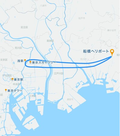 【都内夜景プラン:22分(船橋ヘリポート発)】