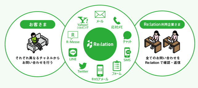 『Re:lation(リレーション)』は、複数の問い合わせ窓口を一元管理し、チームで共有できる顧客対応クラウドです。