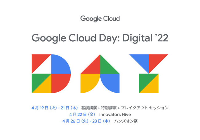 クラウドエース株式会社(本社:東京都千代田区、代表取締役社長:青木 誠)は、2022 年 4 月 19 日 (火) - 4 月 28 日(金)に Google Cloud が開催するデジタル カンファレンス Google Cloud Day: Digital '22 にプラチナスポンサーとして協賛します。 また、4 月 19 日(火)のパートナーセッションでは、「最短・最速でアドホックな分析環境を手に入れる方法」をテーマに、当社執行役員 松本健治とマーケティング部 部長 杉山裕亮 が登壇いたします。