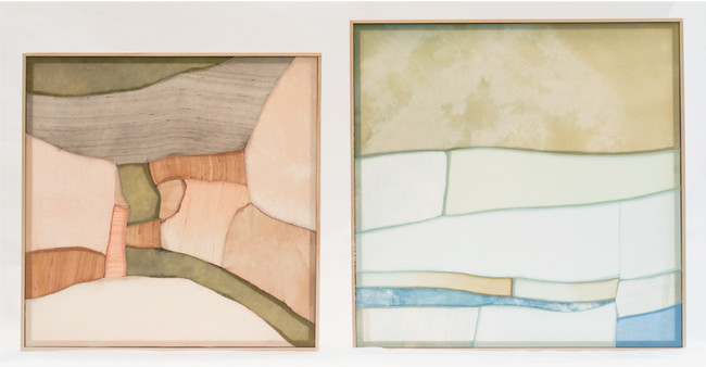 今回は、リニューアルする「サボン」「ホワイトリリー」の香りから着想を得て、SHIRO の製品に使用しているカレンデュラやヨモギなども染料に用いて、2点の作品を制作していただきました。
