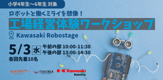 株式会社ツクリエ(本社:東京都千代田区 代表取締役:鈴木英樹 以下、ツクリエ)は、起業家教育プログラム「ミライクルラボ」の一環として、小学生対象イベント「ロボットと働く未来を想像!工場経営体験ワークショップ」を5月3日(水)に川崎重工業株式会社と共催で開催します。