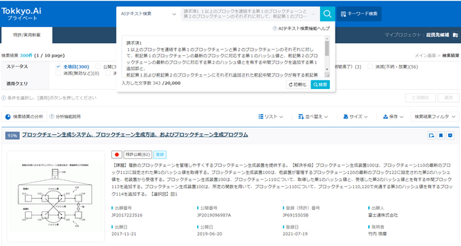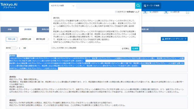 特許検索エンジン「Tokkyo.Ai」や、プライベート特許検索サービス、知財取引プラットフォーム 「IPマーケットプレイス」、オンライン商標出願依頼サービスなど、知財の総合サービスを展開するTokkyo.Ai株式会社の親会社のリーガルテック株式会社(本社:東京都港区、代表取締役社長 佐々木 隆仁 以下、リーガルテック社)は、AIで特許調査をサポートする「AIテキスト検索」等の機能を追加しました。