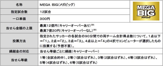 独立行政法人日本スポーツ振興センター(JSC)は、1口300円で1等最高当せん金が日本くじ史上最高額※1の12億円※2となる、スポーツくじ「MEGA BIG」を毎週販売※3しており、これまでに28本の1等12億円当せんが誕生※4しております。