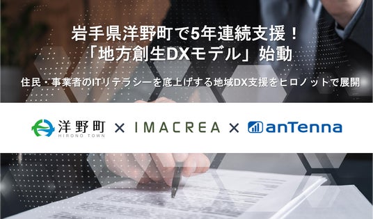 株式会社イマクリエ(本社:東京都港区、代表取締役:鈴木信吾、以下、イマクリエ)は、アンテナ株式会社(本社:東京都中央区、代表取締役:吉井豊、以下、アンテナ)と共同で、岩手県洋野町より「令和7年度デジタル技術導入・活用促進業務」を受託しました。