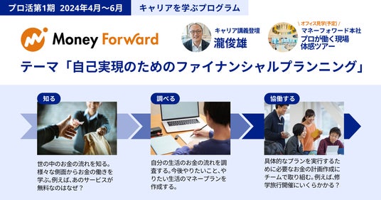 第1期の活動では、株式会社マネーフォワードとのパートナーシップのもとプロ活「自己実現のためのファイナンシャルプランニング」が4月から開始されます。