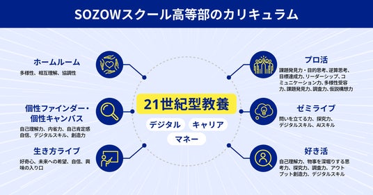 オンラインフリースクール「SOZOWスクール小中等部」を運営するSOZOW株式会社(所在地:東京都品川区、代表取締役:小助川 将)は、2024年4月より通信制サポート校である「SOZOWスクール高等部」を新規開校します。これにより、小学4年生から高校3年生までの9年間のオンライン一貫教育体制が実現します。高等部では特にデジタル・キャリア・マネーという領域の学びを重点的に行いながら、生き方・働き方の多様化が進むこれからの時代を主体的に生きるために必要な力を育成します。