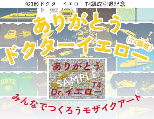 ドクターイエローと一緒に撮った写真やドクターイエローのTシャツを着た写真など、ドクターイエローにまつわる写真について「#モザイクアートでありがとう」のハッシュタグを付けての投稿を呼びかけ、集まった写真で「ありがとうドクターイエローT4」の文字が浮かび上がるモザイクアートを作成いたします。