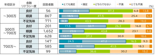 さらに(図表5)では、年収帯にかかわらずこの傾向が一貫して見られ、金融リテラシー度が高い層ほど、自身の収入の使い方に対する理解や納得感が高く、結果として報酬への満足度も向上している可能性が示されています。
