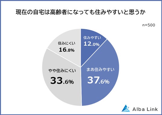 今回、株式会社AlbaLink( https://albalink.co.jp/ )が運営する訳あり物件買取プロ( https://wakearipro.com/ )は、持ち家にお住まいの500人を対象に「高齢者が住みやすい家」についてアンケート調査を実施しました。