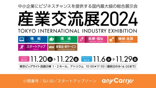 ラストマイル物流に特化した物流ソリューション事業を展開する株式会社エニキャリ(以下当社)は、11月20日(水)から11月22日(金)の3日間、東京ビッグサイト西展示棟で開催される「産業交流展2024」に出展します(小間番号:SU-10)。