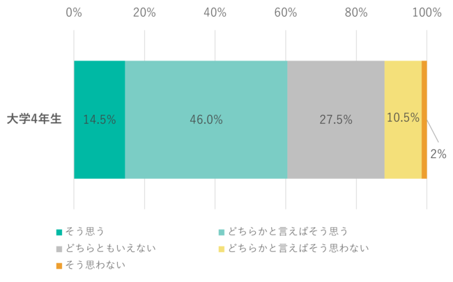 インタツアーが19~25歳に調査したアンケートによると、就職活動を通じて「企業側は自社を良く言うことが多く、信用しにくい」について、大学4年生の60.5%、社会人2年目の58.1%が「そう思う」「どちらかと言えばそう思う」を選んだことがわかりました。