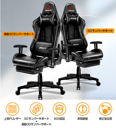 進化版の「JPRACING」ゲーミングチェアは【3Dランバーサポート】+【振動3Dランバーサポート】二つが付属、座った時に曲がった背筋を伸ばし、腰への負担が少ない理想的な正しい着座姿勢をサポートしてくれます。ご必要に応じて、【振動3Dランバーサポート】にUSBケーブルで給電してから、長時間の座り込みに腰の負担を緩解します。