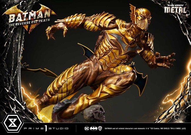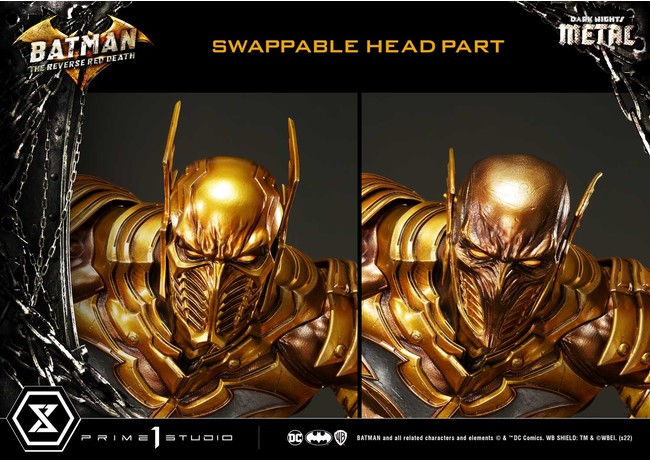 ブルース・ウェインに奪われたスピードフォース。その高速移動能力と身体を取り戻し、黄金のヒーローに再誕したバリー・アレンの登場です。コミック『ダークナイツ:メタル』からお贈りするプライム1スタジオ10周年限定アイテム、リバース・レッドデス!