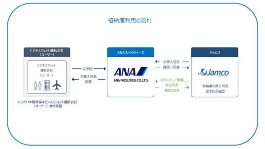 ジャムコが航空機整備拠点として仙台空港内に保有する格納庫において、ANAファシリティーズが格納庫の管理・運用を行い、整備スケジュール等によって生じる格納庫内の「遊休スペース」を、主にビジネスジェット運航会社やビジネスジェットのオーナー様に提供するサービスです。