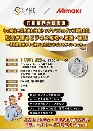 (株)ミマキエンジニアリング大阪支店にて代表取締役による無料セミナーを開催いたします!