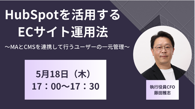 2023年5月18日(木)13時00分~13時30分でZOOMにて「【HubSpotを活用するECサイト運用法】~MAとCMSを連携して行うユーザーの一元管理~」について語るウェビナーを開催いたします。