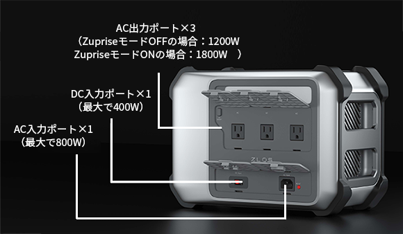 筐体は極めてコンパクトですが、ACポートの最大出力は驚きの1200W!(※Zupriseモードでは1800W)これほど高出力であるため、ノートPCやミキサーなどの小型の電気機器を複数台同時に充電することはもちろん、電動ハンマーや電動チェーンソーのような大型電気機器を稼働させることも可能です!DIY作業・庭木のお手入れにも最適です!