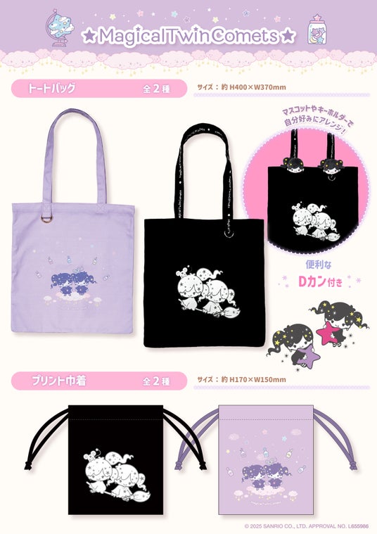 ■マジカルツインコメッツ プリント巾着 価格:990円(税込)