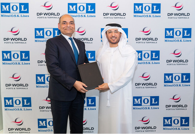 株式会社商船三井(社長:橋本 剛、本社:東京都港区、以下「商船三井」)とDP World(グループ会長およびCEO:サルタン アフメド ビン スラヤム、本社:ドバイ、以下「DPW」)はアラブ首長国連邦(UAE)のジェベル・アリ港にて完成車物流事業に関する協業と、UAEをはじめとする中東域の港湾ならびに海事産業の二酸化炭素排出削減で協働するための覚書(MoU)を締結したことを発表しました。