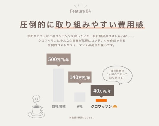診断やガチャに取り組みたくても、開発コストが心配で始められないという企業様も多いものです。