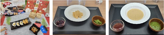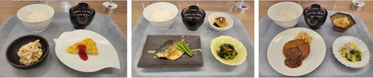 科学的根拠に基づいたLEOCならではの調理法で作るオリジナルメニュー(一日の献立てをイメージ)として、朝食「アンサンブルエッグ 根菜サラダ」をはじめ、昼食「鯖の塩焼き さつまいもミルクバター 菜の花の辛し和え」、夕食「ハンバーグ 緑豆春雨のチャプチェ ブロッコリーのソテー」などを展示。その他には、形態食(ソフト食、ミキサー食)のサンプルなどを展示中です。