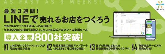 その経験を活かし、2022年10月にLINE公式アカウントに対応したAPIツール「Atouch(アタッチ)」をリリース。これにより、企業はLINEのトーク画面上で商品陳列や決済が可能となり、顧客はIDやパスワードなしで購入を完了できます。