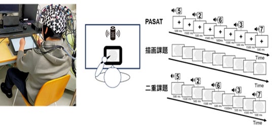 図1. 研究の実施環境及び課題(描画課題とPASAT)の概略図