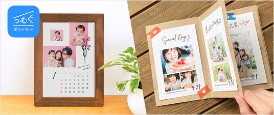 オリジナルカレンダーやアルバムなどの形に残すなら「つむぐポストカード」で
