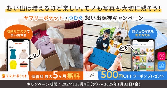今回のキャンペーンを皮切りに、収納サブスク「サマリーポケット」と「つむぐ」の連携によって、想い出保管のお悩み解決や、暮らし方に合わせた収納の最適化を提案してまいります。