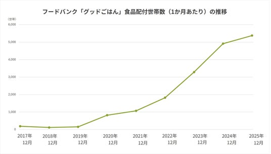 フードバンク「グッドごはん」食品配付世帯数(1か月あたり)の推移